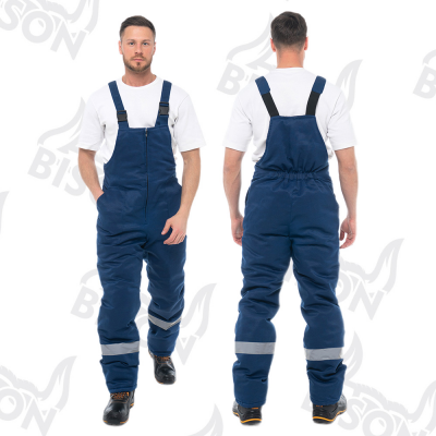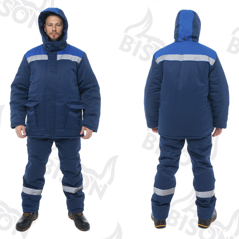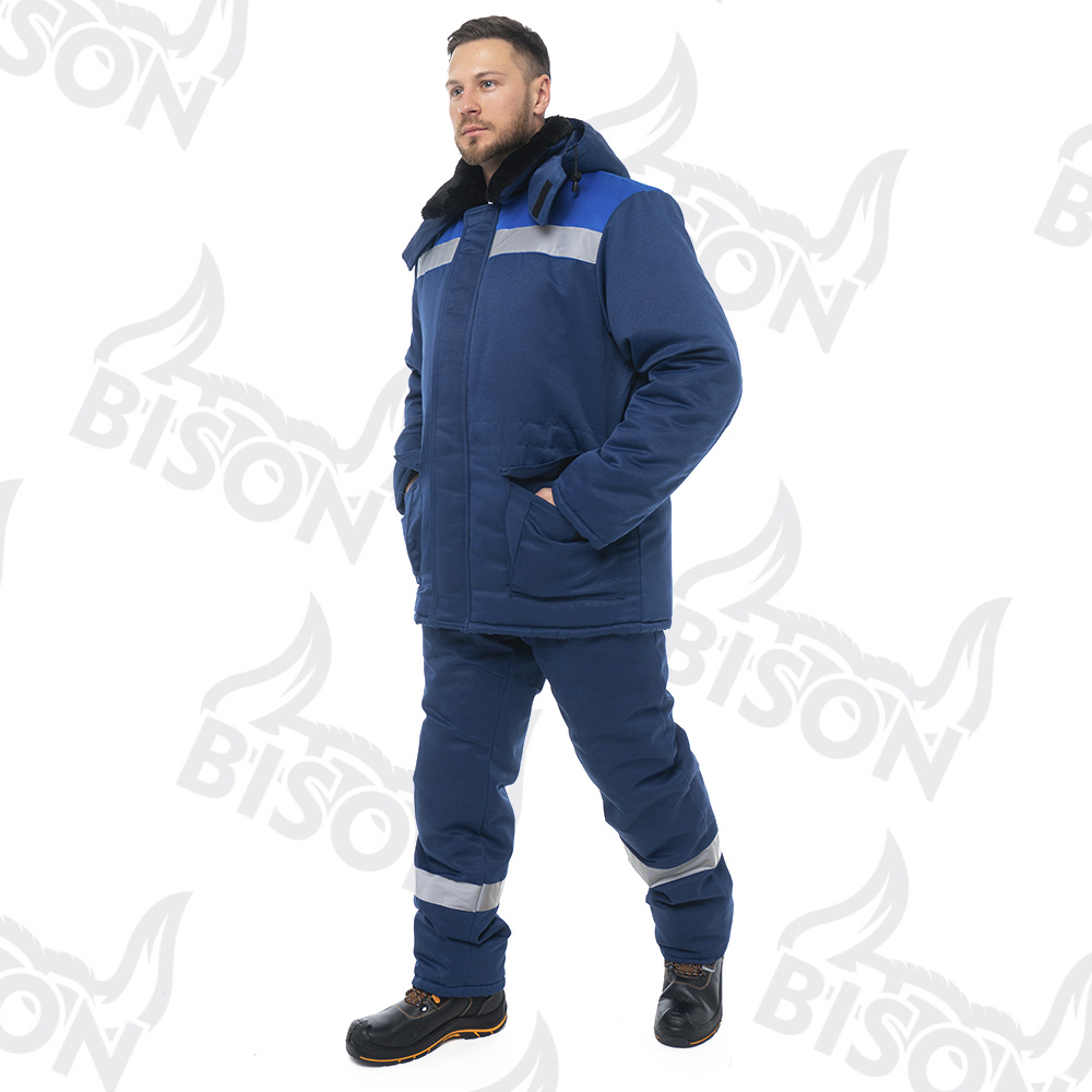 Костюм утепленный "ПОЛЮС СТАНДАРТ БИЗОН" изготовлен в соответствии с ГОСТ и включает в себя 2 предмета: куртка / полукомбинезон. Удлиненная куртка прямого силуэта с ветрозащитной планкой с застежкой на ленту-контакт. На куртке расположены накладные карманы с клапанами с застежкой на ленту-контакт. Ширина изделия регулируется по талии куртки. Изделие оснащено утепленным съемным капюшоном и меховым воротником. Центральная застежка утепленного полукомбинезона - молния. Полукомбинезон фиксируется бретелями с эластичной резинкой, на нем расположены накладные карманы с наклонным входом. Для безопасной работы сотрудника в местах с плохим освещением на костюме «ПОЛЮС СТАНДАРТ БИЗОН» предусмотрена световозвращающая полоса шириной 50 мм.